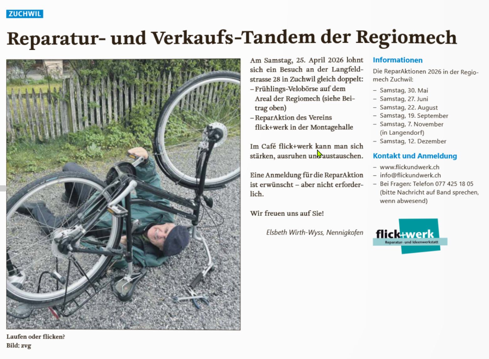 Solothurner Zeitung zu Besuch bei flick+werk: Bericht